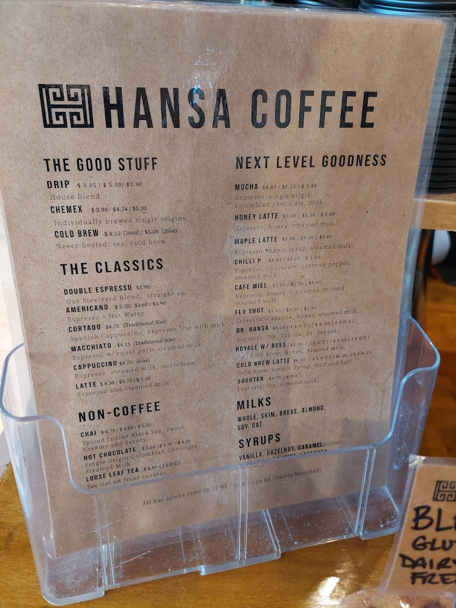 The menu boasts a delightful selection of brewed and cold brew coffee, with prices starting at just $2.95. For a unique experience, try the Dr. Hansa espresso, an inventive 16-ounce option priced at $3.75, or indulge in single-origin brews from Ethiopia Sidama and Uganda Bugisu Bulaago, each priced at $16.95.